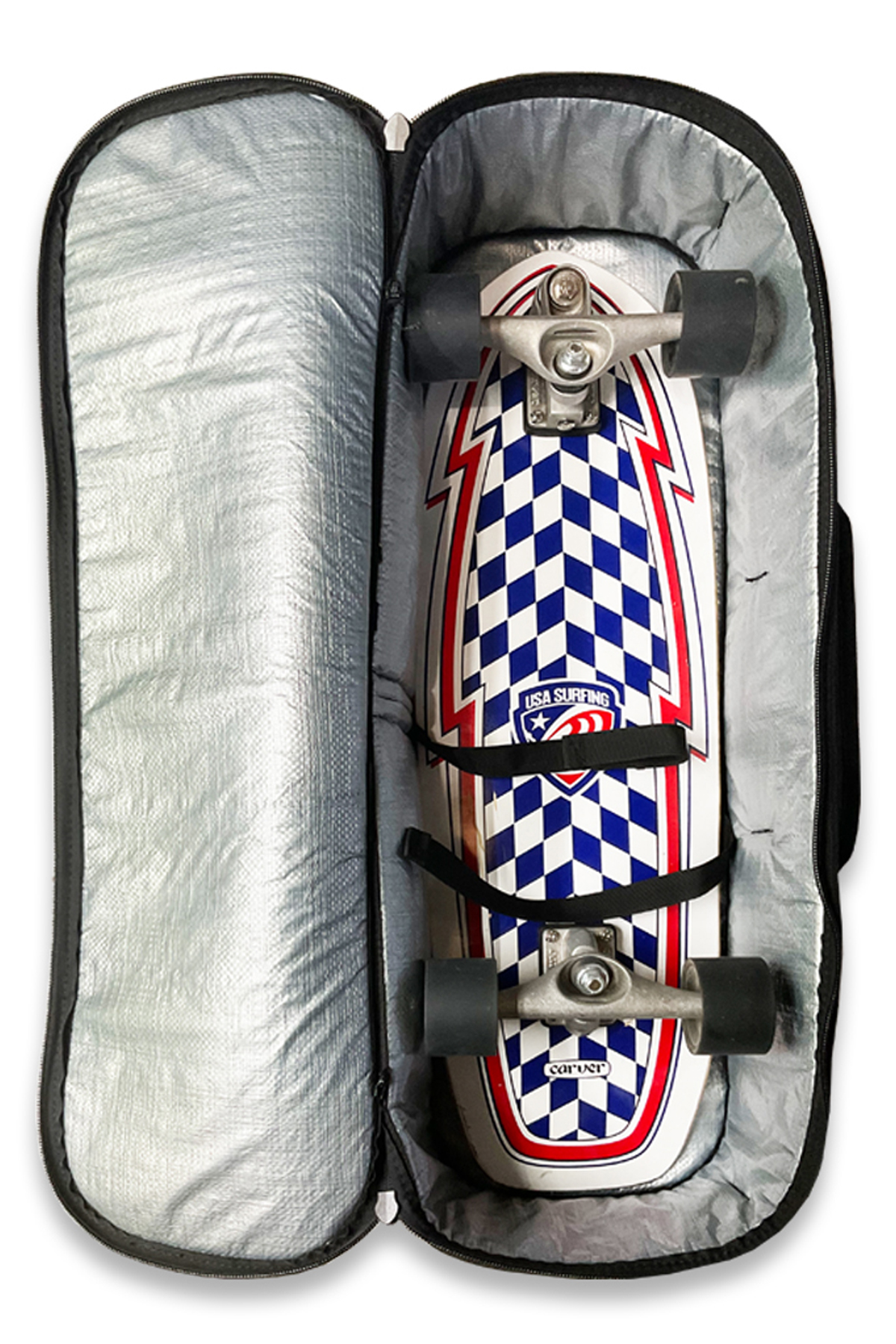 Introducing the Ultimate Impact Surfboard Bag – a game-changer in board protection. This unique bag features a {TM, Patent Pending} LUM-Impact PROShell, laminated ultrafoam membrane combined with double 10mm impact foam =20mm, ensuring unparalleled durability and a semi-rigid feel. Inside, you'll find our innovative TM. Patent Pending Proshell design, lined with 10mm impact foam for added security, providing superior rail protection. With a total of 30mm impact foam, our new bag eliminates the need for bubble wrap, offering ultimate peace of mind for your board's safety. All YKK zippers come with our Military Grade plastic sliders and woven webbing pullers, allowing you to secure your boards, leashes, fins, and wetsuits inside the bag fearlessly.